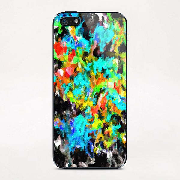 psychedelic splash painting abstract texture in blue orange yellow green black