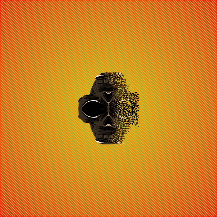 fractal black skull portrait with orange abstract background