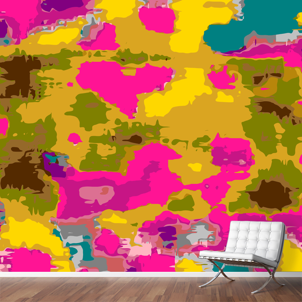 psychedelic geometric painting texture abstract in pink yellow brown blue