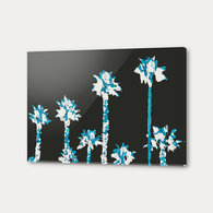 blue and white palm tree with dark blue background