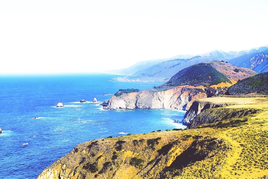 mountain with ocean view at Big Sur, Highway 1, California, USA