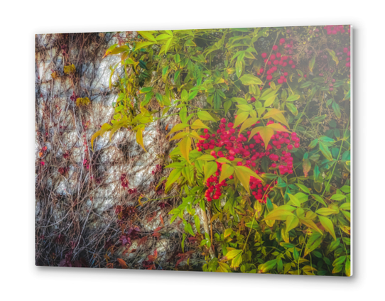 red seed plant with green leaves and cement wall background