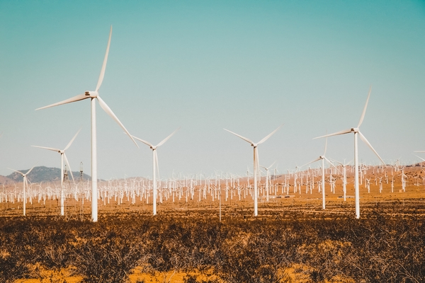 Wind turbine in the desert at Kern County California USA