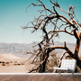 Tree branch in the sand desert and mountain view at Death Valley national park California USA