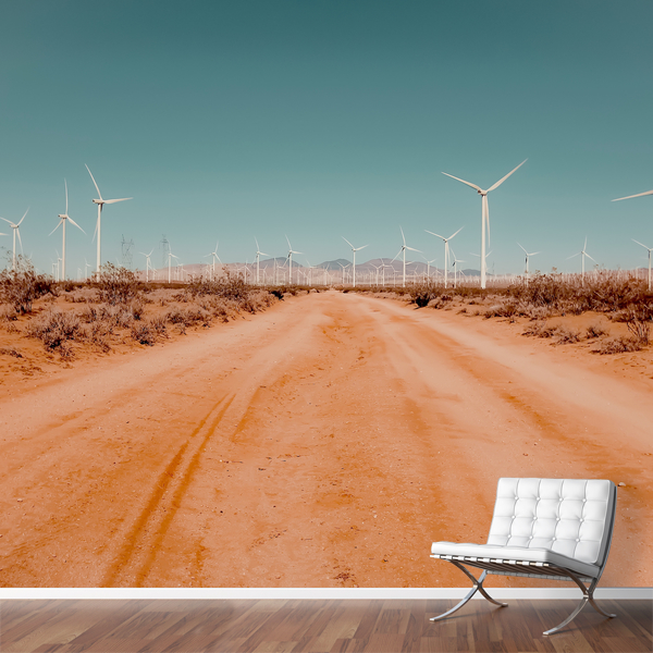 Wind turbine in the desert with sandy road at Kern County California USA