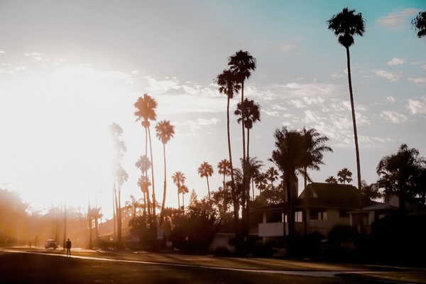 sunset sky in summer with palm tree view in California USA