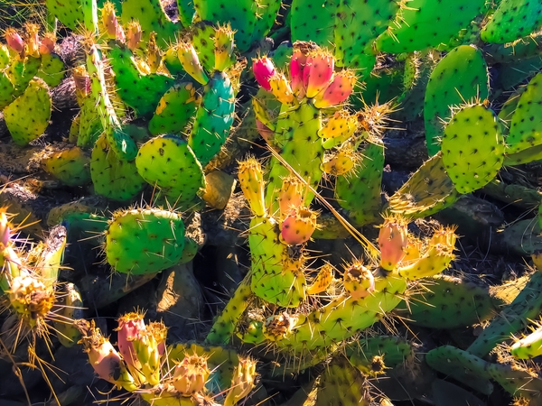 Closeup green and pink cactus garden texture background