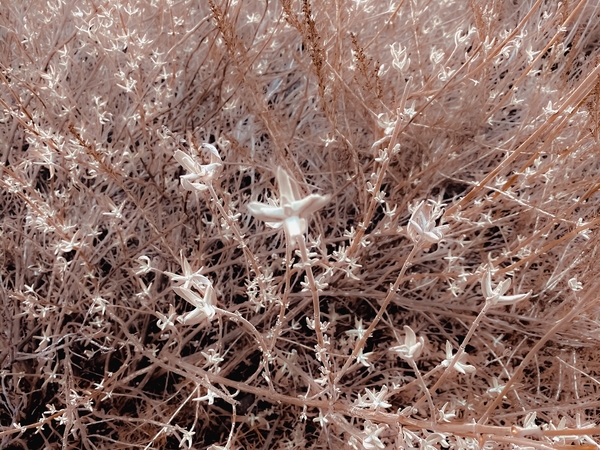 blooming dry plant with brown dry grass field background