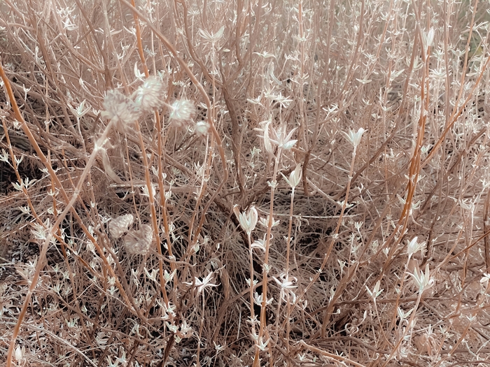 › Blooming dry plant with brown dry grass field abstract background
