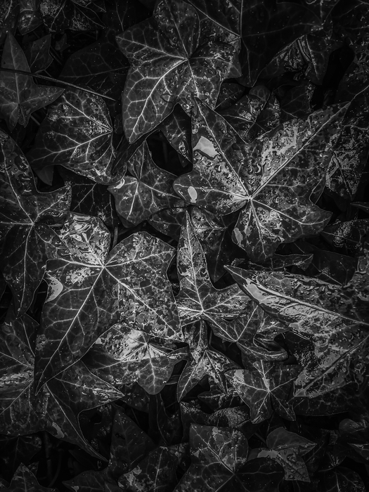 › Ivy leaves plant texture background in black and white