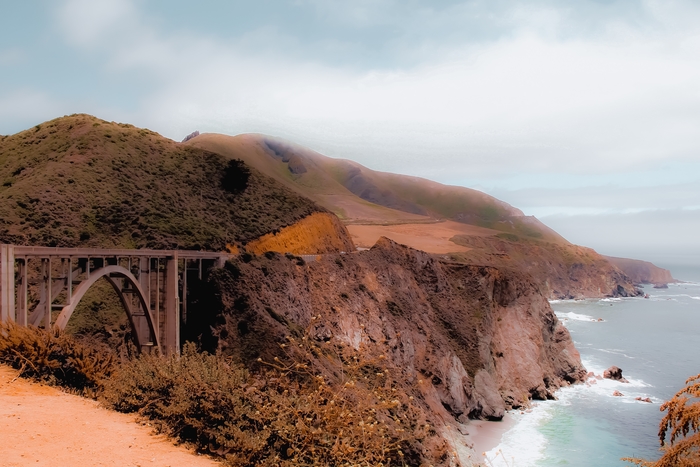 Bridge and mountain with ocean view at Bixby Creek Bridge, Big Sur, Highway 1, California, USA
