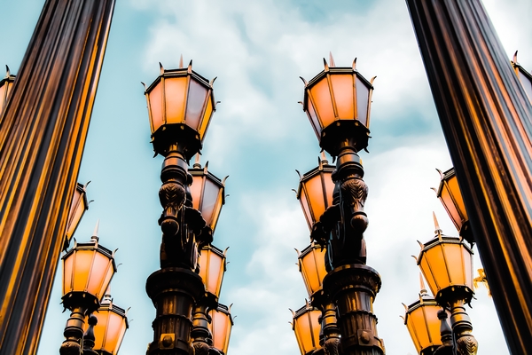Urban Lights at LACMA, Los Angeles, California, USA with blue sky