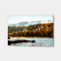 boat on the lake with pine tree and mountain background at Mammoth Lakes, California, USA