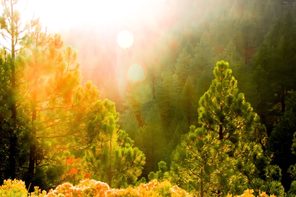 green pine tree with sunlight at Lake Tahoe, Nevada, USA
