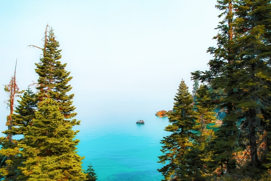 › Boat on the blue lake at Lake Tahoe, California, USA