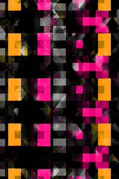 geometric symmetry art pixel square pattern abstract background in pink orange black