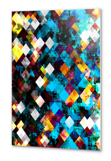 geometric pixel square pattern abstract background in blue yellow