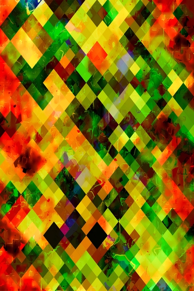 geometric pixel square pattern abstract background in green yellow brown