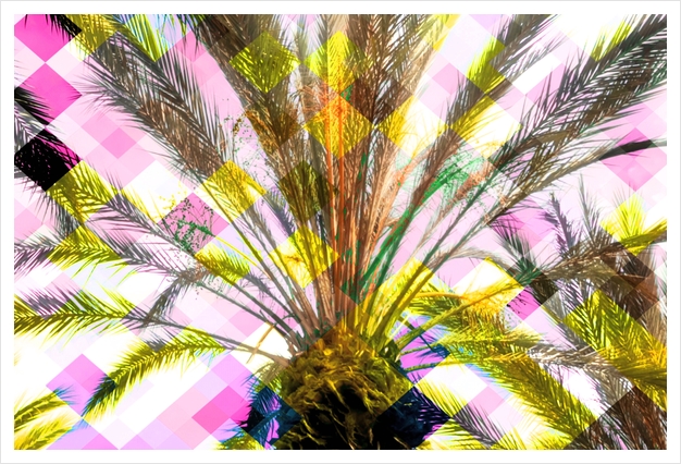 palm tree with geometric pixel square pattern abstract in pink yellow