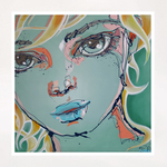 a close-up portrait, hand painted in symbioses of urban art, comic, pop surrealism style and drippings.