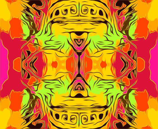 skull head with yellow green red and orange background