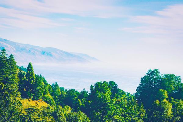 Beautiful ocean view with forest front view at Big Sur, California, USA