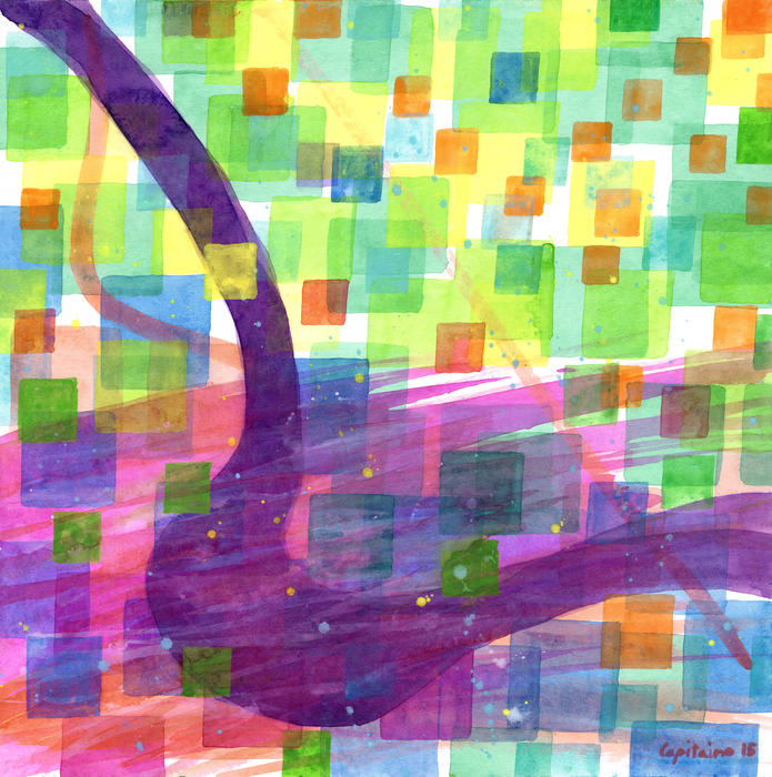 This is a combination of rhythmic squares combined with several free forms like a bend, a splash and a line. It's a work about the harmonic combination of opposites: Dark and light; dynamic