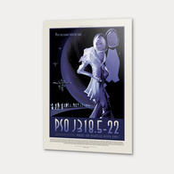 The Visions of the Future posters, from the NASA's Jet Propulsion Laboratory in California, promote travel to planets and moons. This poster depicts a couple all dressed up, ready to go out