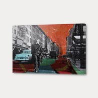 Cityscape of the New York. Mixed media and collage on paper. This particular artwork is part of the Collages series. These collages are built up with all kinds of pictures, photos and images