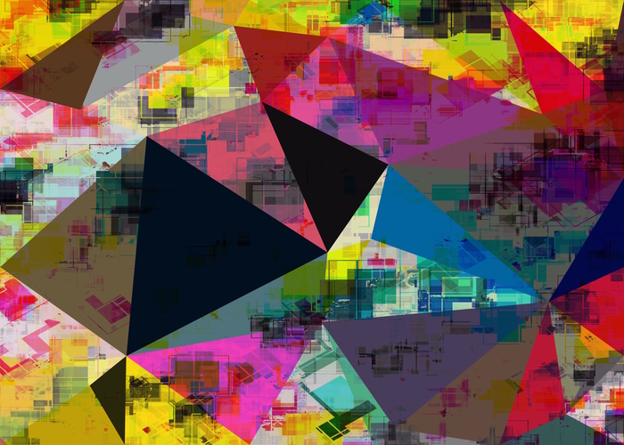 psychedelic geometric triangle pattern abstract with painting abstract background in pink blue yellow red green