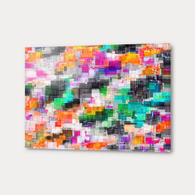 psychedelic geometric square pixel pattern abstract in orange green pink blue