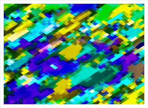 psychedelic geometric square pixel pattern abstract in green yellow blue purple