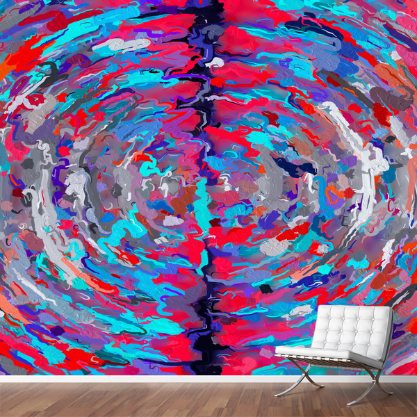 psychedelic circle pattern painting abstract background in blue red purple