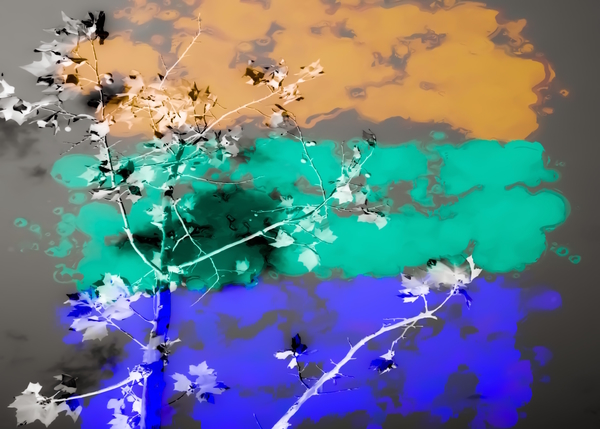 tree branch with leaf and painting abstract background in brown blue green black