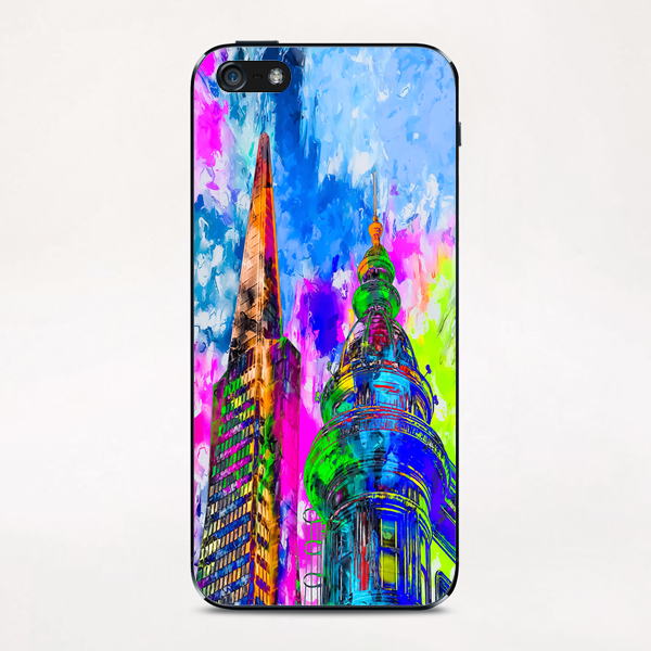 pyramid building and classic building exterior at San Francisco, USA with colorful painting abstract background