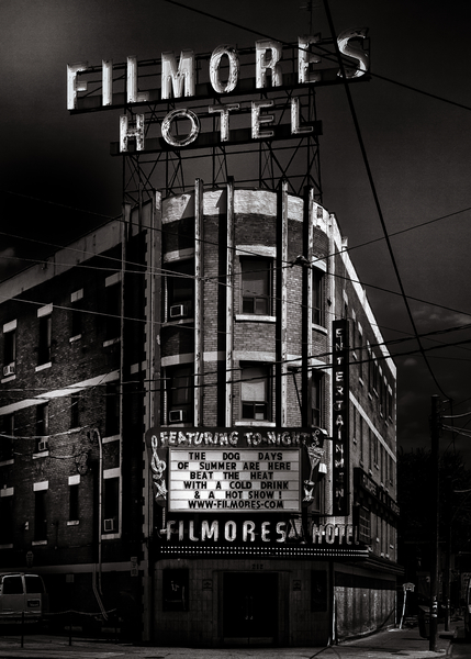 In a building that was constructed in 1914, The Filmores Hotel at No 212 Dundas St E in Toronto Canada has been serving, as the sign says 'cold drinks and hot shows' since 1985. The building