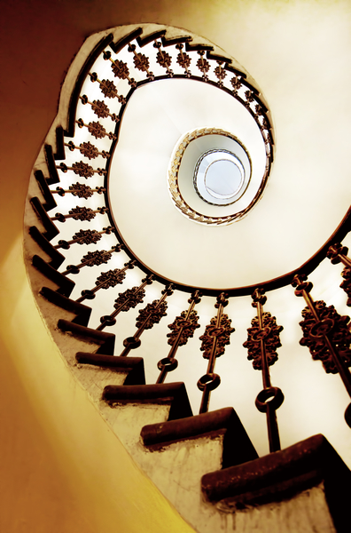 Spiral staircase in warm colours