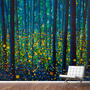 Peel and stick self-adhesive wall covering printed at high-resolution with premium inks for stunning color gamut and accuracy, using a premium repositionable that will stick to almost any surface, is easy to install, can be removed and re-hung hundreds of time without losing adhesion, leaving a mark, or damaging surfaces. Large size murals are printed in multiple panels.