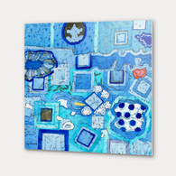 Different shapes are whirling through this imaginary room. At the top it seems as if they are hanging orderly at the wall, but beneath they are wildly mixed and partly overlapping each other