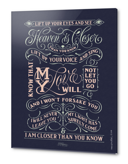 Bring your artwork to life with the stylish and modern lines of an acrylic print. Our acrylic glass prints provide images with crystal clear clarity and added depth. The image is printed on Gloss Film and with a delicate process is sealed behind a 3/32” (2.38mm) thick Acrylic leaving it free of tears and bubbles. A sturdy Aluminum Dibond panel is then added for protection, stability, and for hanging. The acrylic print is very durable, lighter than regular glass and water resistant. The high gloss of the acrylic sheet enhances the hues and vibrancy of the image, providing for intense, rich colors and produce stunning results. The print is offset from the wall by a 1" thick wooden frame mounted to the back – provided ready to hang.
