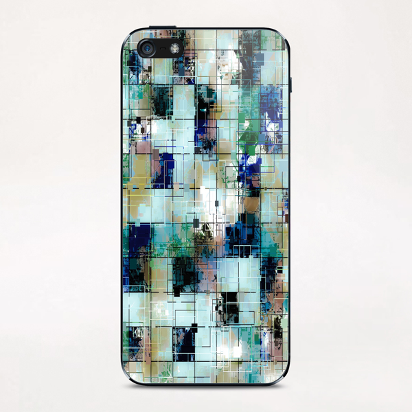 psychedelic geometric square pixel pattern abstract background in green blue brown