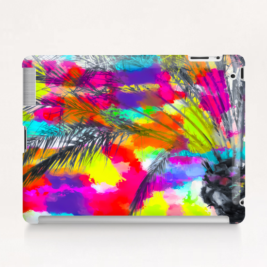 palm tree with splash painting abstract background in red pink yellow blue